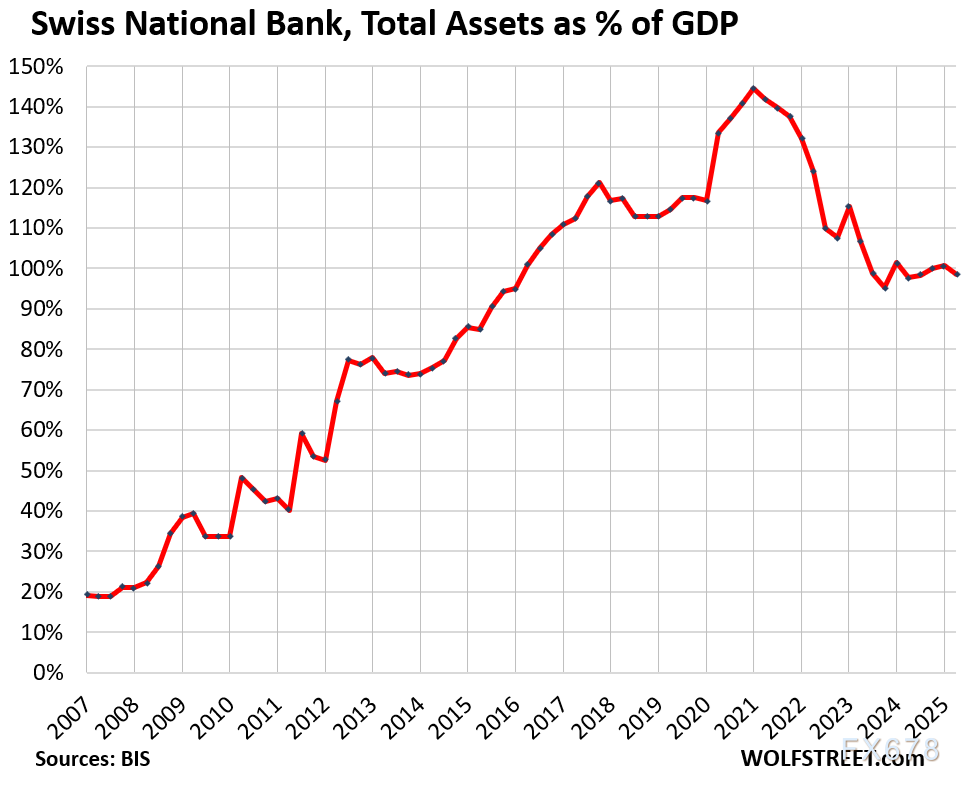 日本、瑞士央行干预力度“独一档”:两国比值(日本115%、瑞士98%)远超其他国家,反映其经济对央行政策的高度依赖——日本长期靠超宽松QE托底经济、稳定资产市场,且缩表刚启动,此前资产负债表膨胀规模全球罕见;瑞士则因独特的外汇干预模式(印瑞郎购外币资产),形成非传统QE式的高比例,其资产负债表本质是“货币对冲型配置”,而非单纯的经济刺激。